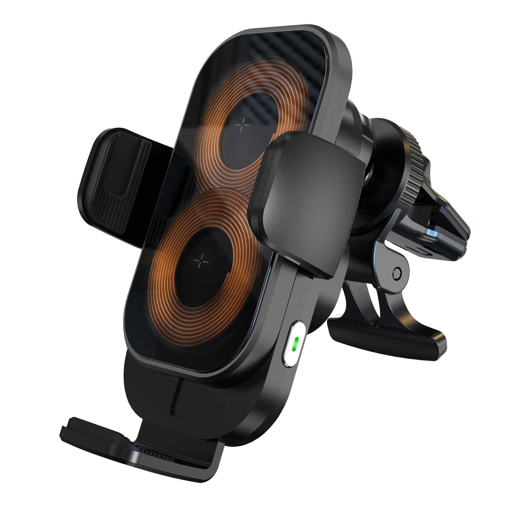 Cargador inalámbrico rápido para coche, soporte de teléfono con soporte de ventilación de aire, logotipo personalizado, 15W, alta calidad, barato